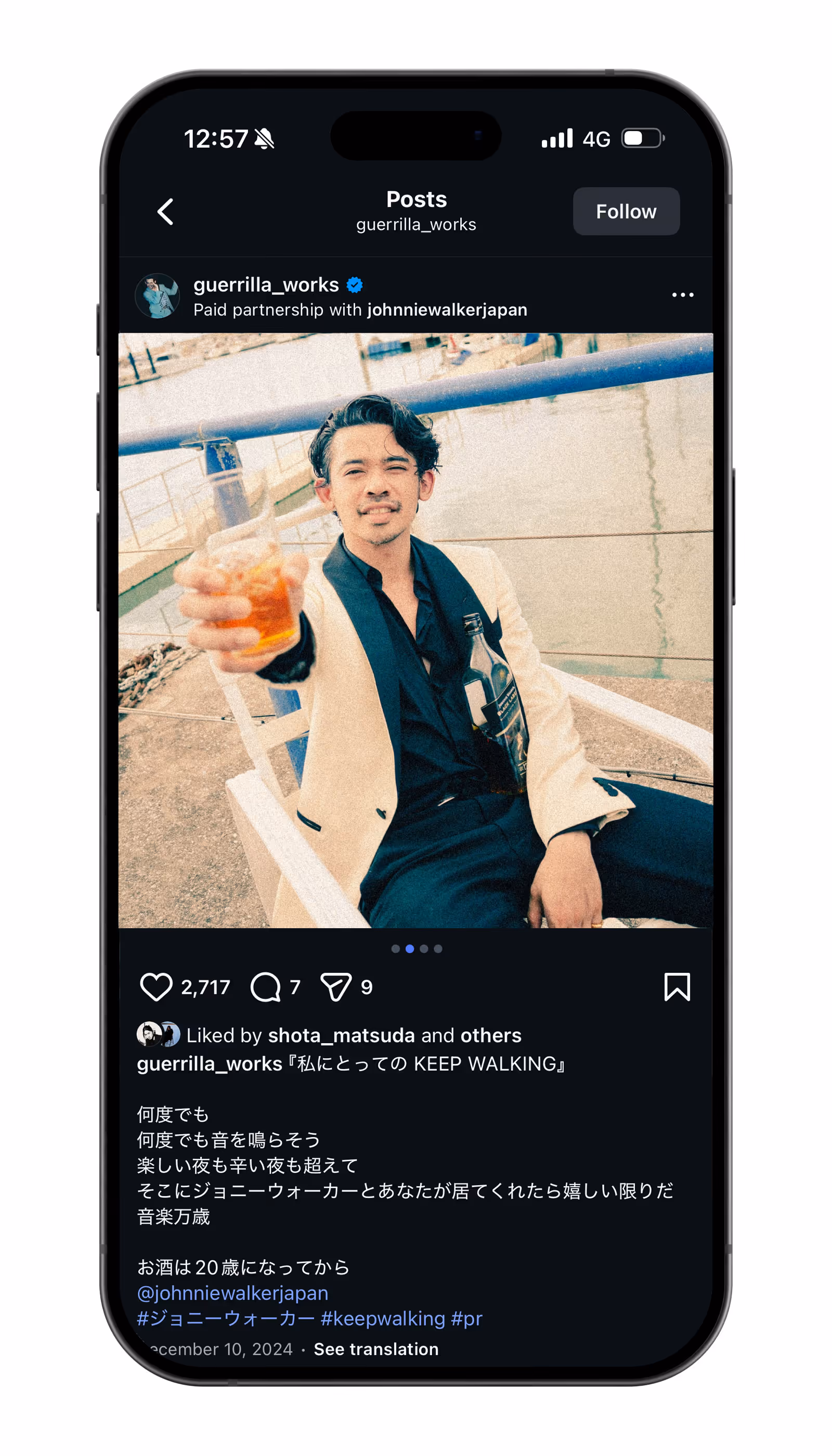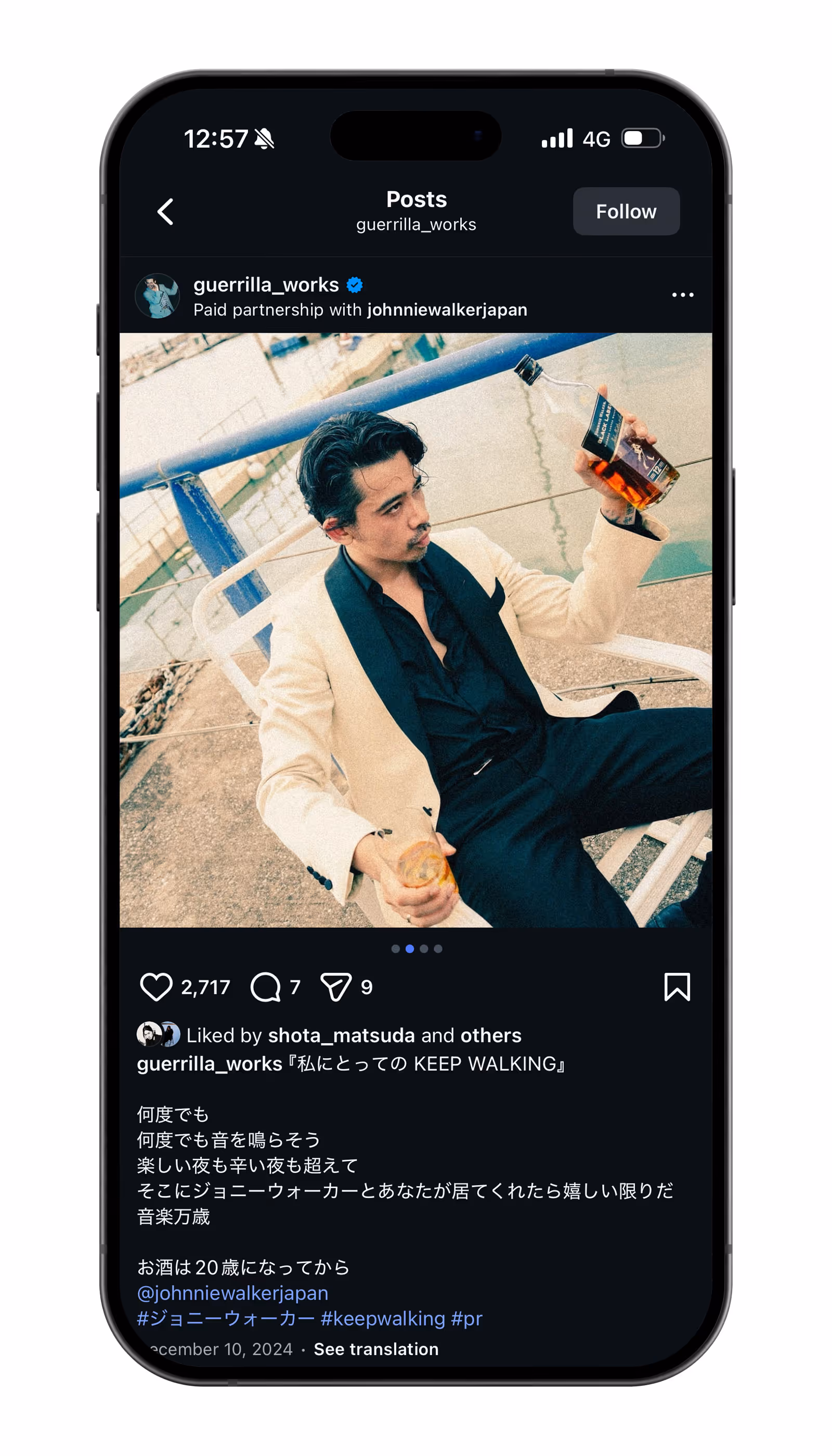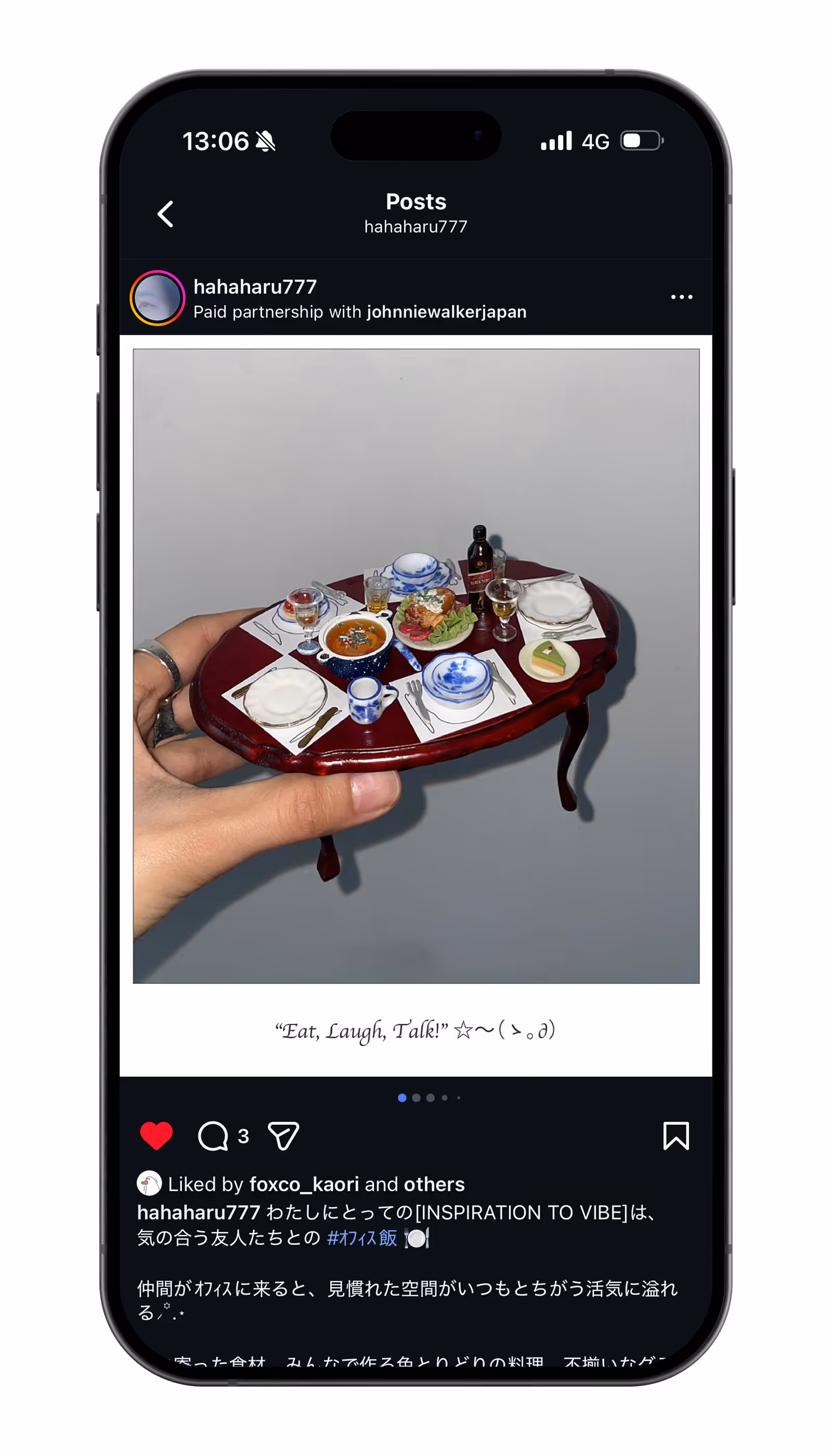 Diageo's Johnny Walker Black Label & Black Ruby Whiskey Brand Creator Collaboration Campaign Utilizing Social Networking (Instagram). We presented a creative concept to photographers, graphic artists, illustrators, musicians, and other creators, asking them to post their work on their Instagram feeds. This was not merely a paid influencer campaign, but a creative campaign born from mutual respect between the brand and the creators. It contributed to enhancing the brand's likability and is still ongoing.